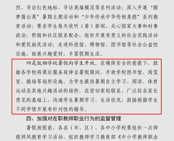 6月16日,河南省安陽市教育局提出各中小學將課后服務延伸至暑假期間。
