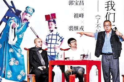 郭寶昌帶著自己剛剛由三聯書店出版的新書《了不起的游戲:京劇究竟好在哪兒》登臺“說戲”;祖峰、裘繼戎兩位名角嘉賓,則以自己的親身經歷,和“寶爺”郭寶昌一起探討京劇藝術的無盡魅力。