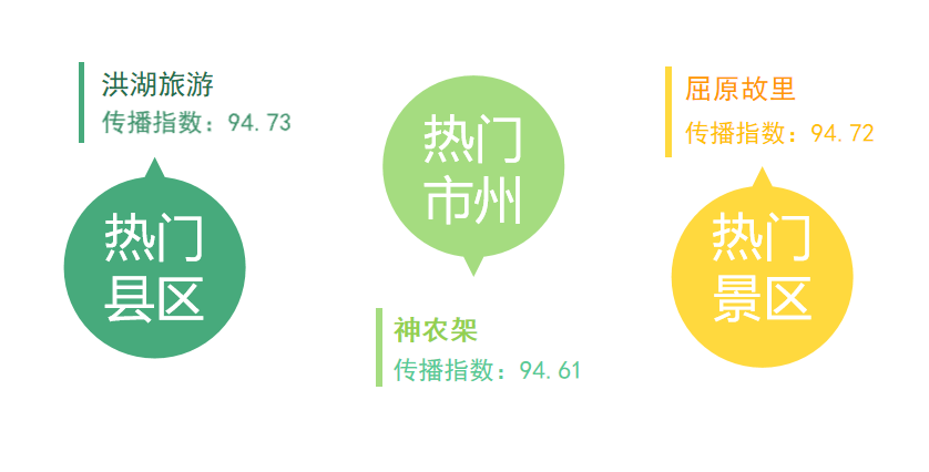在市州維度,本期神農架、武漢市傳播指數仍然位居前列,其中,神農架傳播指數為94.61,武漢為94.52 ,恩施傳播指數為94.47,位居第三。梳理發現,6月6日,神農架舉辦華夏始祖炎帝祭祀大典。600名炎黃子孫沿著先祖的足跡,齊聚神農架,祭祀華夏始祖炎帝神農生辰。與此同時,距神農架千里之外的湖南炎陵縣炎帝陵,一隊名為“重走炎帝之路”的自駕小隊也同神農架一起,共祭大典。大典期間舉辦了原始部落狩獵場景重現、焚香祭始祖、“重走炎帝路”特色旅游線路發布等一系列活動吸引游客。央廣網、人民網、湖北日報、荊楚網等媒體聚焦報道,推高了神農架的旅游傳播指數。