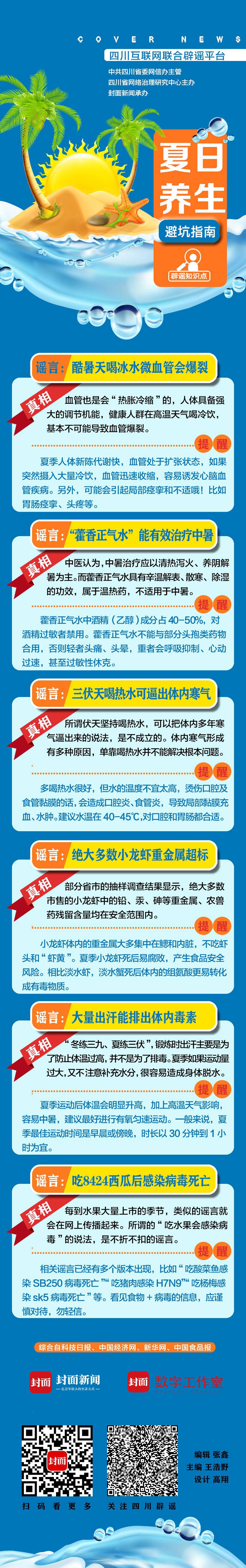 三伏天來臨,又到了一年中氣溫最高且又潮濕、悶熱的日子,這時候,關于夏季養生的謠言又開始“活躍起來”。四川互聯網聯合辟謠平臺梳理了一些常見的健康謠言,趕緊收藏起來!