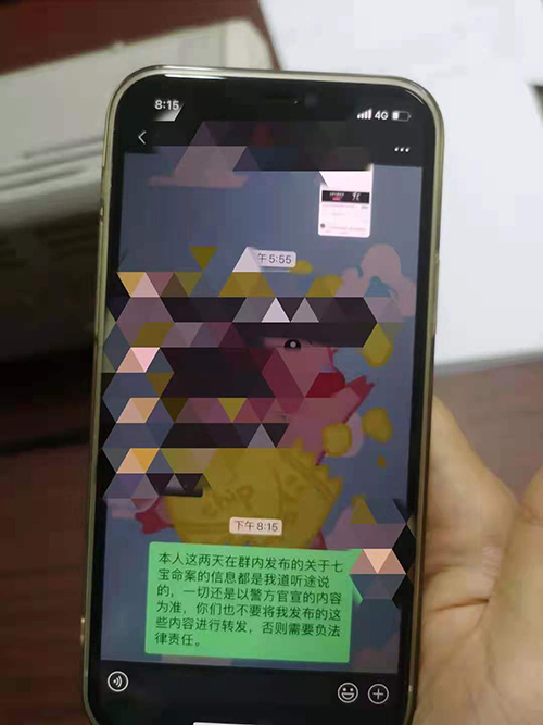 該造謠者寫道:“本人這兩天在群內發布的關于七寶命案的信息都是我道聽途說的,一切還是以警方官宣的內容為準,你們也不要將我發布的這些內容進行轉發,否則需負法律責任。”(記者 朱奕奕)