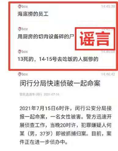 近日,一則微信截圖在網上流轉,稱上海閔行一家海底撈內發生一起命案,為男性員工作案并使用店內機器作為兇器。