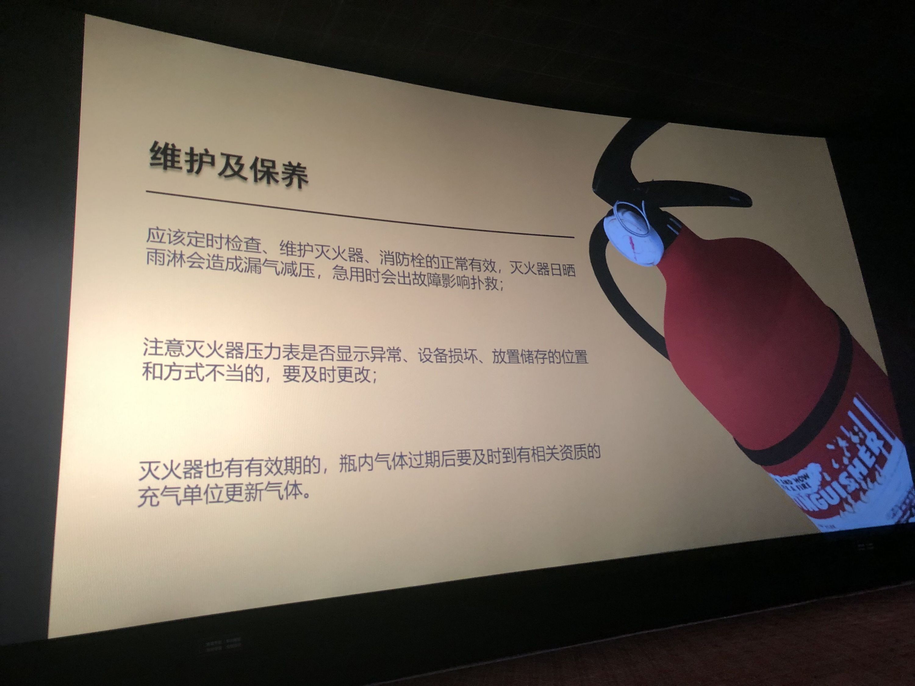 武漢光谷巨幕影城有限公司負責人現場介紹了影城對消防的經驗,“我們影城堅持日巡,月查,季練,還有年檢測。”他說,影院內每天都有工作人員巡查消防器材,不能有絲毫疏忽,每月都要檢查滅火器等消防工具的有效期,每個季度會組織消防演練,每年檢測影院整體消防狀況。