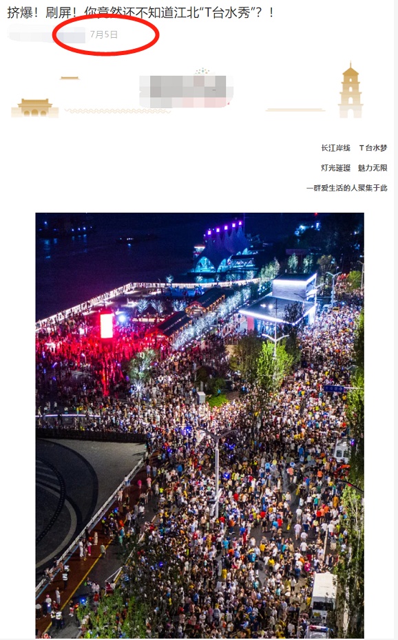 7月5日江北“T臺水秀”報道截圖