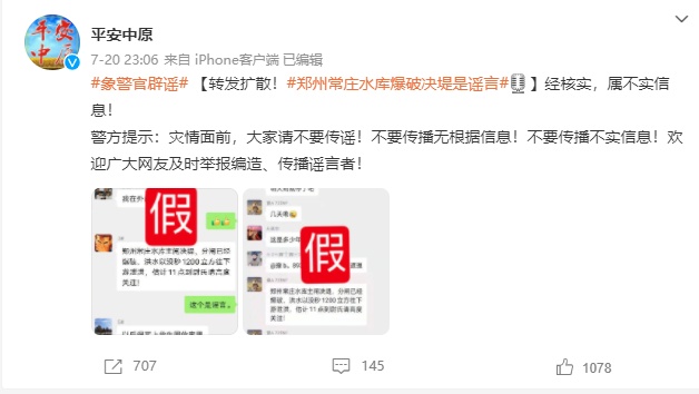 7月20日,“鄭州市政府宣布即刻進入特大自然災難一級戰(zhàn)備狀態(tài)”的消息在網(wǎng)上流傳。