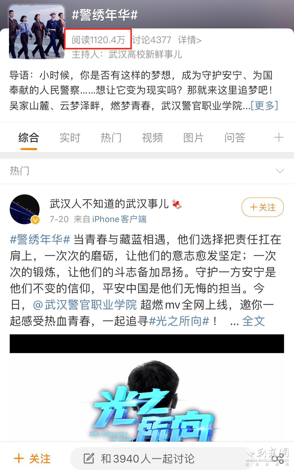 荊楚網(wǎng)(湖北日?qǐng)?bào)網(wǎng))訊(記者邱玲鵬 實(shí)習(xí)生李欣然)隨著高招工作陸續(xù)進(jìn)入填報(bào)志愿時(shí)間,為吸引優(yōu)質(zhì)生源,眾高校為“搶人大賽”紛紛推陳出新。7月22日,一部由武漢警官職業(yè)學(xué)院拍攝的超燃MV《光之所向》火爆全網(wǎng),相關(guān)話題#警繡年華#沖上微博熱搜,播放量突破1100萬。