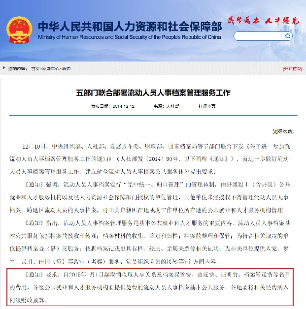 根據相關規定,各級公共就業和人才服務機構應提供免費的流動人員人事檔案基本公共服務。