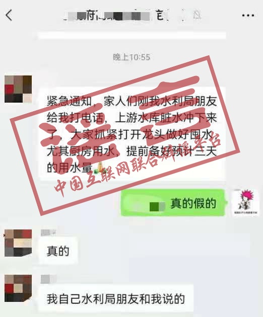 近日,寧波部分微信群中有人傳播“臺風來了,自來水變臟了”的謠言,并發布信息稱“上游水庫臟水沖下來,無法飲用,需立即在家囤三天的水量。”