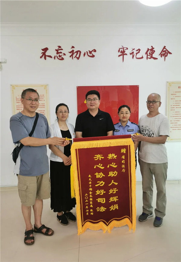 7月20日,金永強家屬分別向遼寧省司法廳、省監(jiān)獄管理局、省強制隔離戒毒所送來錦旗,感謝省司法廳黨組和省監(jiān)獄管理局黨委多年來對老干部的關(guān)心和愛護,感謝省強制隔離戒毒所培養(yǎng)了一位好警察,希望這種愛心永遠傳遞下去。