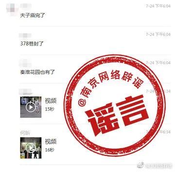 還有微信群在傳“夫子廟完了、三七八巷被封”的短視頻。