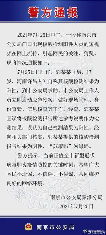 經過調查,南京市公安局秦淮分局做出情況通報,全文如下: