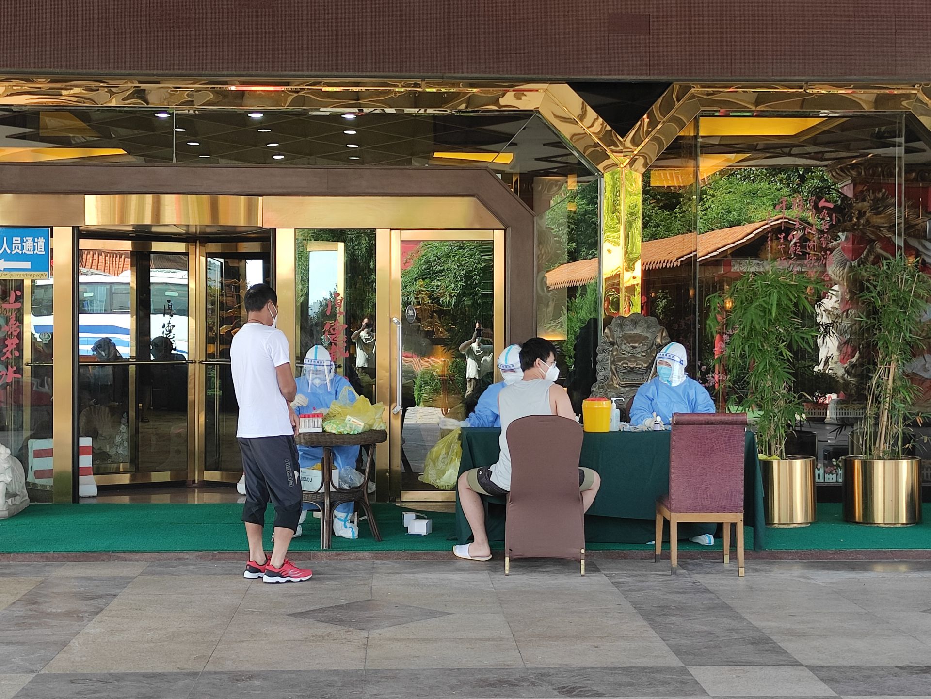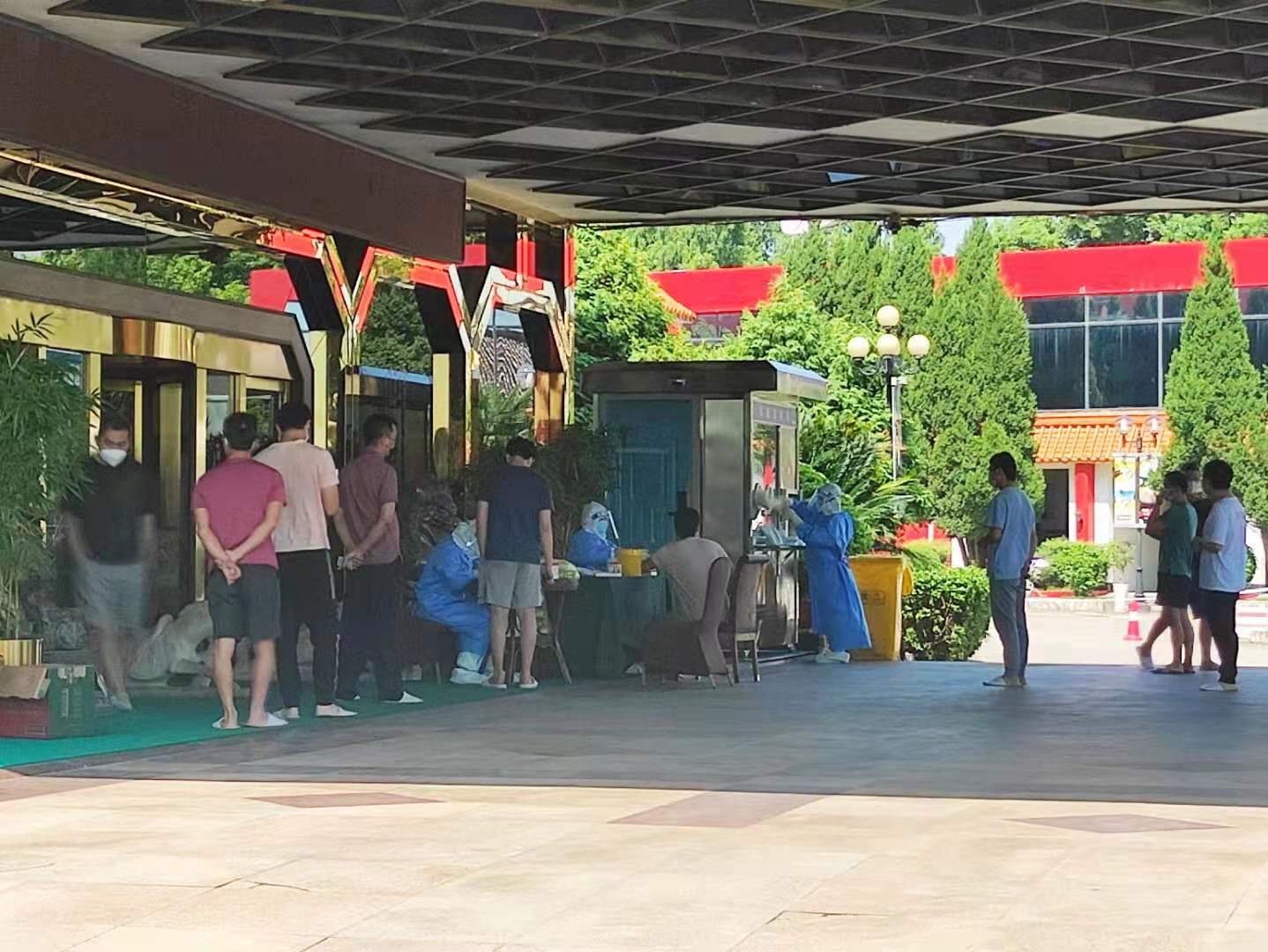 隔離點外的核酸采樣處。通訊員供圖
