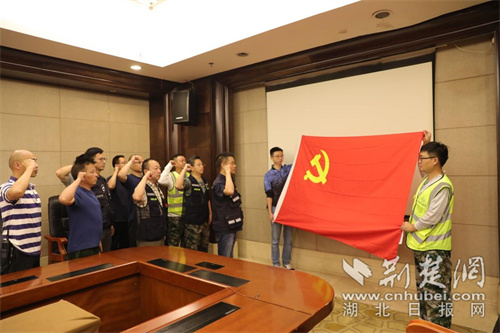 荊楚網(湖北日報網)訊(記者 張城 通訊員李偉、余磊)“哪里需要搶險救援,黨組織就要建在哪里,黨員就要沖向哪里!”7月29日,湖北省馳援河南抗洪搶險應急救援隊臨時黨支部在新鄉市某公寓樓內成立,并召開支部委員會擴大會議,15支搶險救援隊黨員代表在黨支部書記、省應急管理廳防汛抗旱處二級調研員李向陽的帶領下,莊嚴地舉起右手,重溫入黨誓詞。
