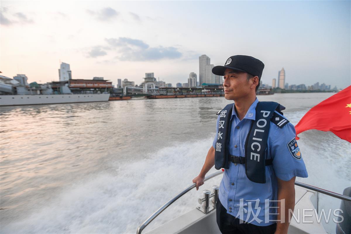 江城之水,浩浩湯湯。7月30日,武漢水警在38攝氏度的高溫天氣下沿江巡邏。當(dāng)天,極目新聞?dòng)浾叽┻^(guò)漢口江灘二期的棧橋,來(lái)到水上公安巡防檢查站,登上“舵落口號(hào)”警用巡邏艇,跟隨武漢水警一同巡江。