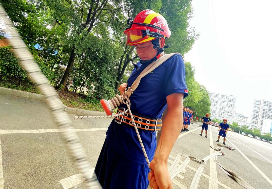 連日來,湖北省咸寧市消防救援支隊新訓隊員克服高溫天氣,在酷暑中,不斷挑戰自我,磨礪打贏本領,練兵場上如火如荼地開展訓練,提升指戰員的綜合業務素質和滅火救援實戰能力。(文:朱燕林 圖:魯祖男)