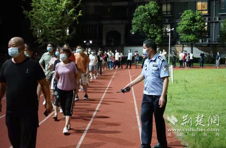 荊楚網(湖北日報網)訊(記者張揚 通訊員楊槐柳 唐時杰 董宏祥)8月3日,武漢決定迅速啟動全市全員核酸檢測。為與新冠肺炎病毒賽跑,全市2820個檢測點立即運行起來。酷暑下,一抹抹警藍聞令即動,日以夜繼傾力為之護航。