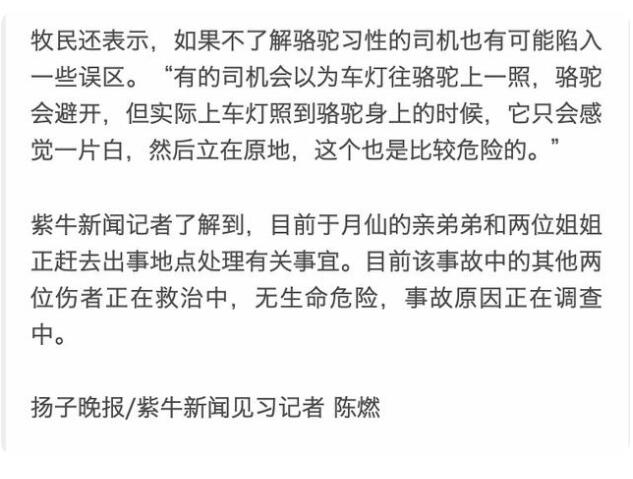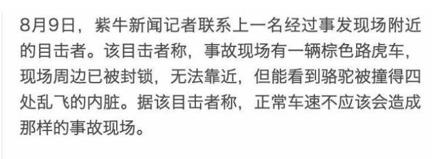 目擊者稱于月仙車禍現場駱駝內臟遍地