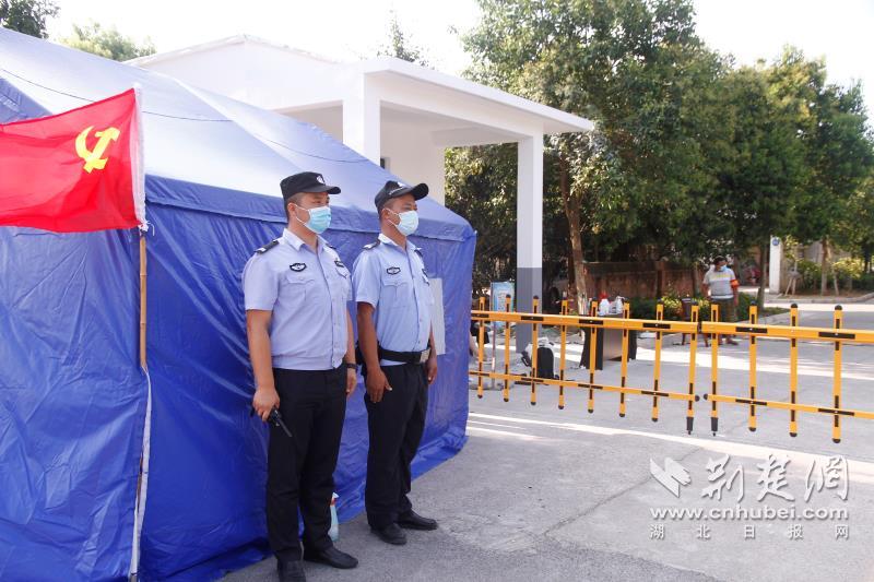 8月9日,荊門市高新區天樂小區門口,一頂帳篷,一條警戒線,臨時設立的防疫卡點內,宏城派出所所長許曉涵正在例行值守。這已經是他和全所警力一線執勤值守的第6天。