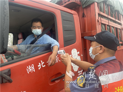 “不用謝,這是我們應該做的。疫情當前,您要注意自身防護戴好口罩,貨物整理好后,請您配合到前面集中檢測點去測量體溫。”