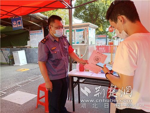 京珠支隊的王東方是硚口區站鄰社區主動報名的第一批黨員志愿者。8月3日,從社區群獲悉要實施全員核酸檢測后,在家休息的他第一時間報名。在小區內選取核酸采樣點,擺放核酸采樣區的桌椅,設置警戒線,為消毒瓶加裝消毒液,為測溫槍安裝電池……連日來,王東方引導群眾、調動物資、登記資料,每天連軸轉十幾個小時,但他毫無怨言?!吧頌橐幻h員,要主動站出來,為抗擊疫情盡自己一份綿薄之力?!?/p>
