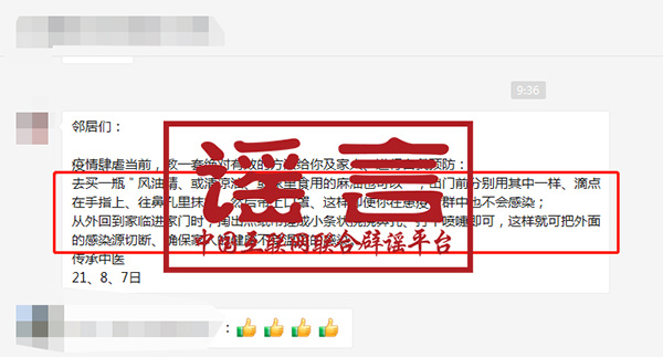 真相:目前沒有任何證據證明風油精、清涼油、麻油的成分對預防或殺滅新冠病毒有作用。“香油涂鼻孔”“人中涂風油精”等所謂可預防新冠病毒的傳言亦為謠言。