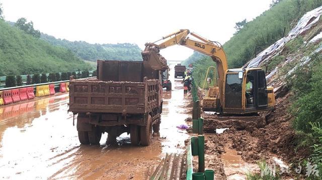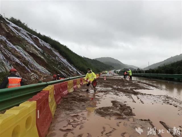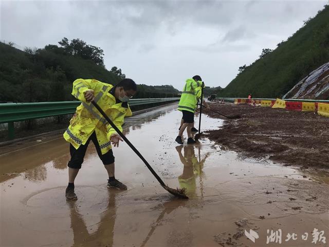 搶時間、保通行。邊坡垮塌,泥石流阻斷路面,如不及時處置,將影響車輛通行。隨岳、襄陽等運營公司組織100多名高速養護人員,從11日晚開始通宵達旦,奮力搶險。