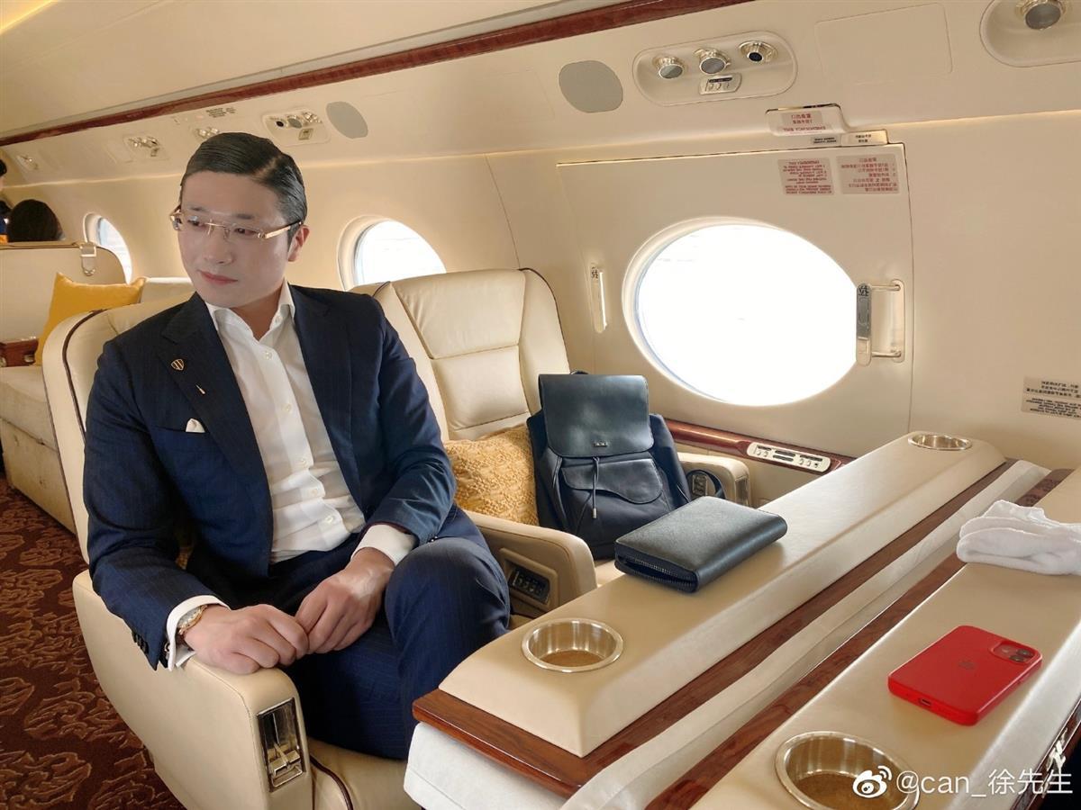 徐勤根在私人飛機內拍照