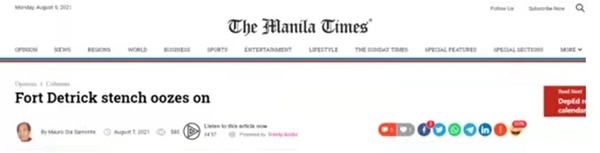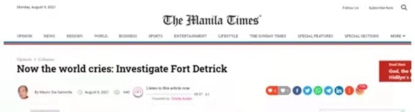 △《馬尼拉時報》評論文章《德特里克堡散發著惡臭》和《現在全世界都在呼吁:調查德特里克堡!》