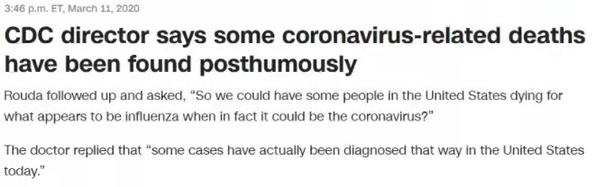美國疾病控制與預防中心前主任羅伯特·雷德菲爾德也早在去年3月11日的國會眾議院聽證會上公開承認,美國確實有原本被診斷為流感、實際上卻是因為感染新冠病毒而死亡的病例。