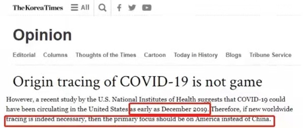 韓國和日本報刊也發文批評美國將病毒溯源問題政治化。文章強調,如果有必要在全球進行溯源調查,“首要目標就應該是美國”。