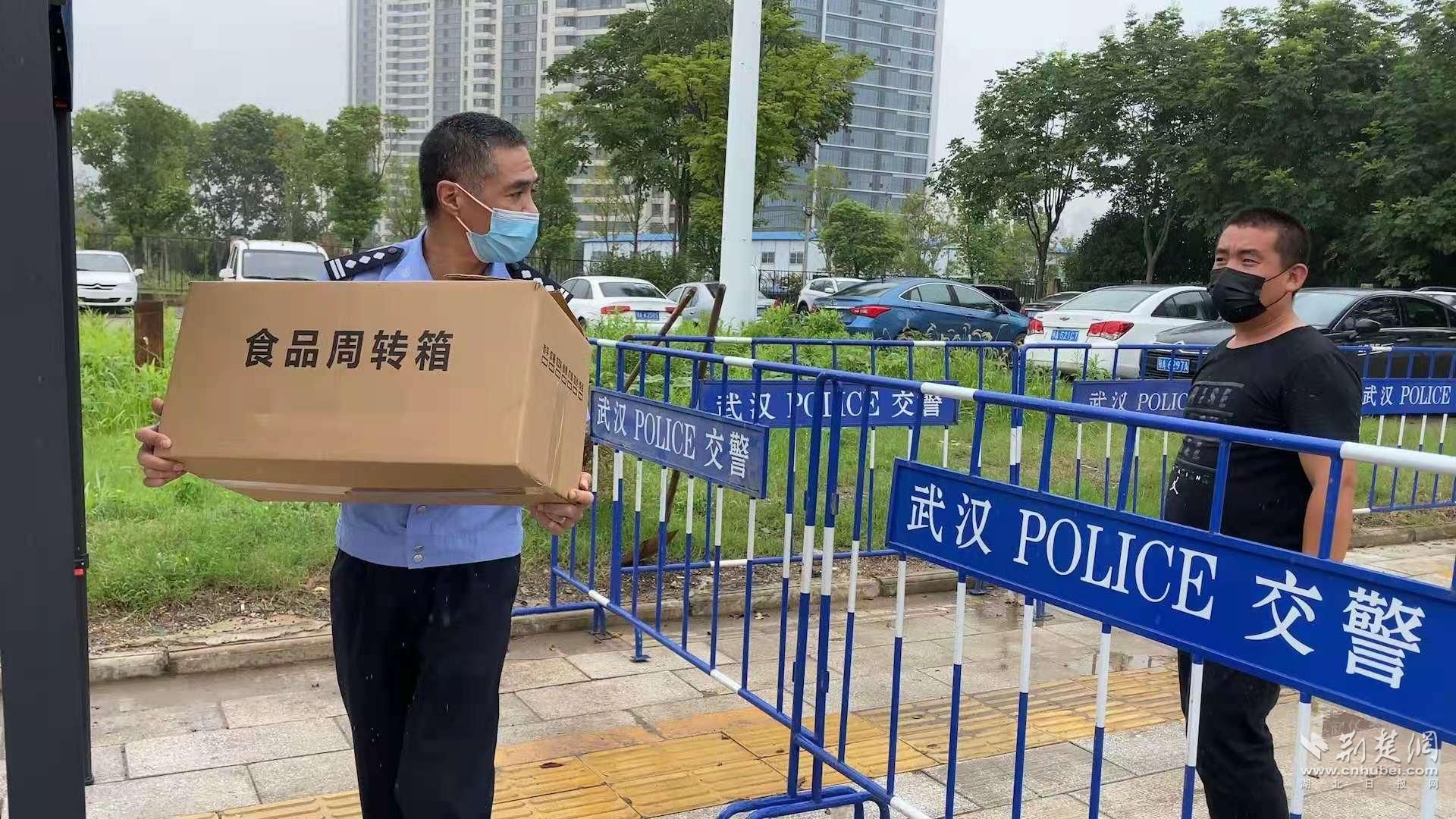 荊楚網(湖北日報網)訊(通訊員徐飛 、吳昊、李晶)連日來,武漢持續被陰雨籠罩,武漢市公安局出入境管理局二大隊民警王峰和戰友們在國博大道老關村卡口駐守,查驗進入人員的綠碼和相關通行憑證。他們是武漢經濟開發區疫情封閉管理最外圍的一道屏障,連日來的高溫和降水,讓他們一直在汗水和雨水中來回切換。