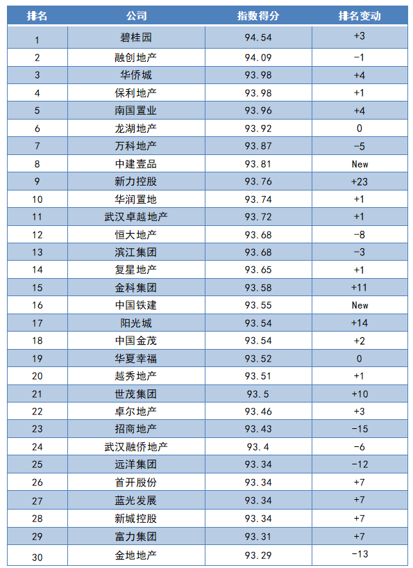8月17日,在鄂地產企業傳播指數7月榜發布(數據統計時間:2021年7月1日至7月31日)。本期,碧桂園、融創地產、華僑城排名前三,傳播指數分別為94.54、94.09、93.98。
