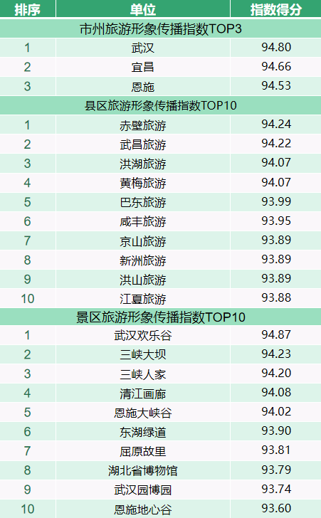上期回顧:湖北旅游傳播指數6月榜:神農架、武漢、恩施位居前三