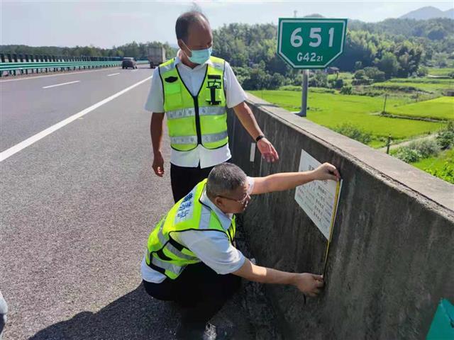 湖北日報訊(記者戴輝、通訊員吳輝、向晶晶)8月18日,麻武高速久雨初晴,舉水河大橋上,第二綜合巡檢組負責人梁木森正給橋梁釘上“信息公示牌”。伴隨打孔機的轟鳴,不到10分鐘,兩塊鋁合金材質橋梁“身份證”分別固定在橋兩端。