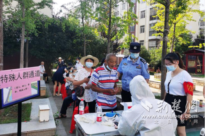 “社區老人很多,我與街道工作人員商量,專門為他們設置一個特殊通道?!本驮诋斕?,社區70多歲的梁老太在家人的陪護下,進行核酸檢測。