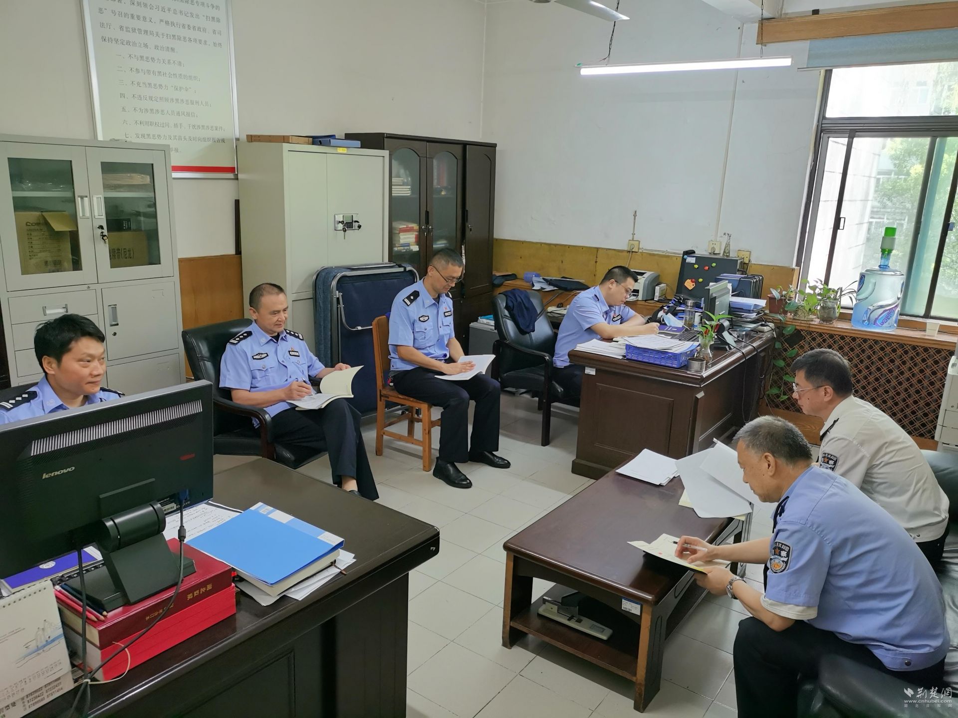 為保障學習效果,提升學習針對性,省監獄局教整辦提前編制《湖北省監獄局機關隊伍教育整頓學習資料匯編》,并明確處(部)室負責人親自主持、帶頭參與晨讀,做到學習有人組織、有人發言、有人記錄。每周各支部將組織開展一次集中學習研討,每人撰寫一篇心得體會。因故缺席的,還要及時補學到位。