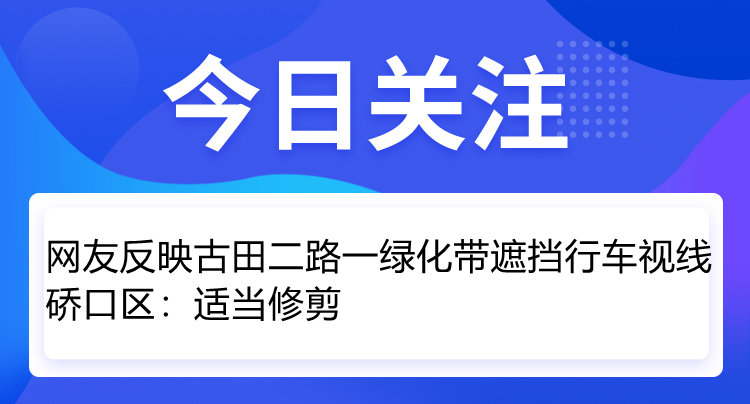 網民留言:硚口區古田二路長豐大道399號地段綠化帶遮擋行車視線。