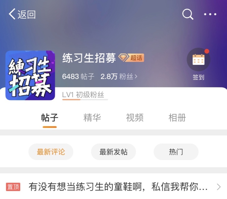 在微博練習(xí)生相關(guān)的超級(jí)話題、練習(xí)生百度貼吧等網(wǎng)絡(luò)渠道中,存在大量“招募”“成團(tuán)”信息。其發(fā)布者往往自稱“藝人統(tǒng)籌”“經(jīng)紀(jì)人助理”,并配以公司的文字和海報(bào)介紹。此外,一些所謂的“星探”“經(jīng)紀(jì)人”還會(huì)在抖音等平臺(tái)以私信方式進(jìn)行招募。