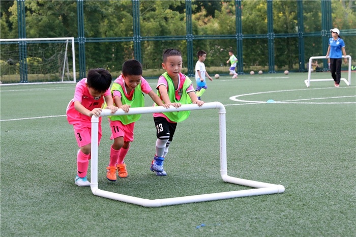 9月4日,廣州市二沙島體育公園內,孩子們在推球門架。新華社記者 黃國保 攝