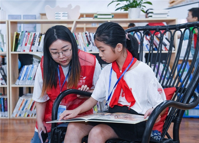 9月4日,浙江省慈溪市錢海軍志愿服務中心開設的“復興少年宮”公益托管課堂開課。這是小學生在志愿者指導下閱讀感興趣的書籍。新華社記者 徐昱 攝