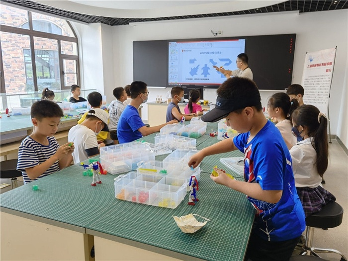 9月5日,孩子們在上海市寶山區青少年活動中心上機器人體驗課。新華社記者 吳振東 攝