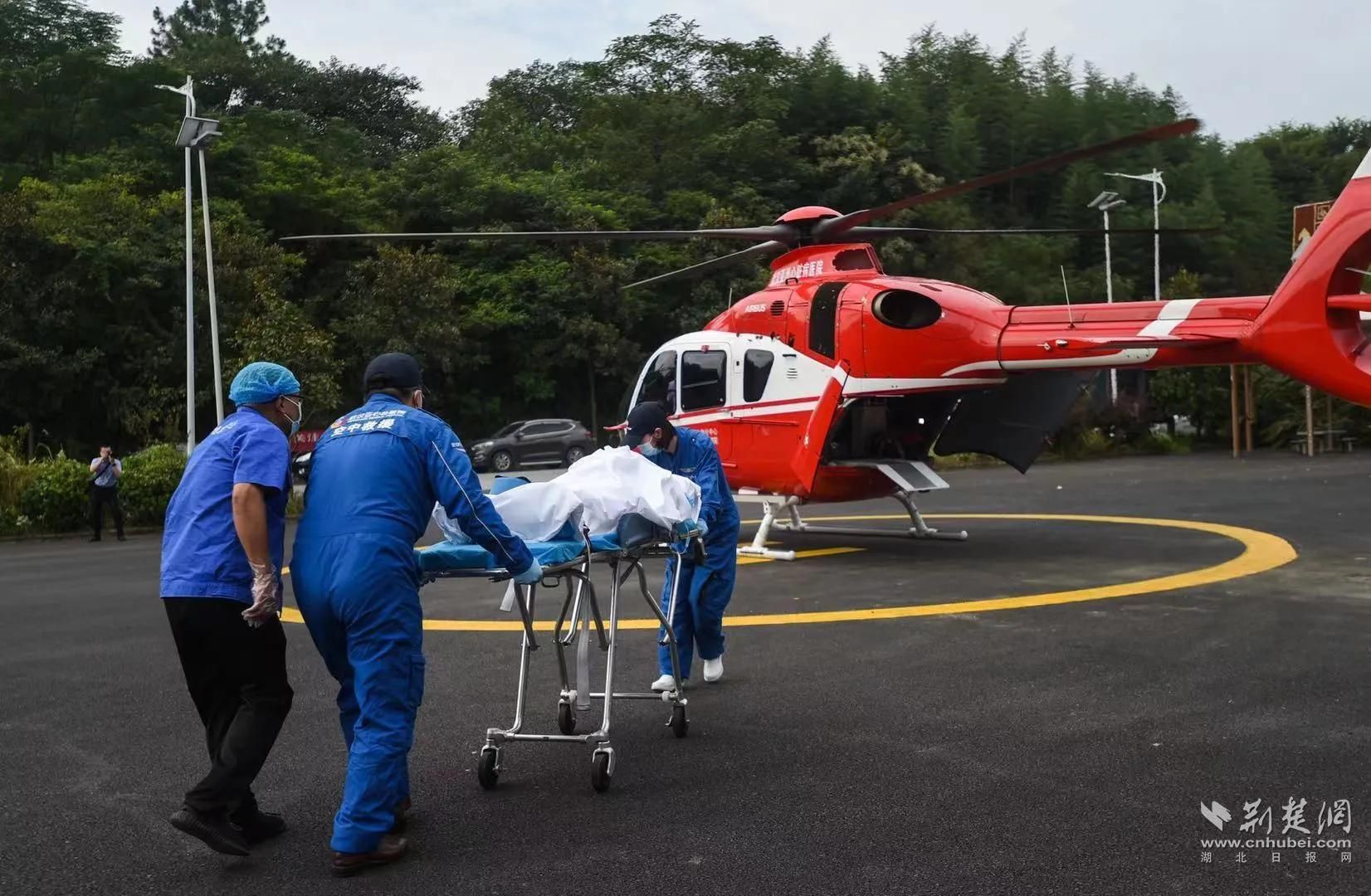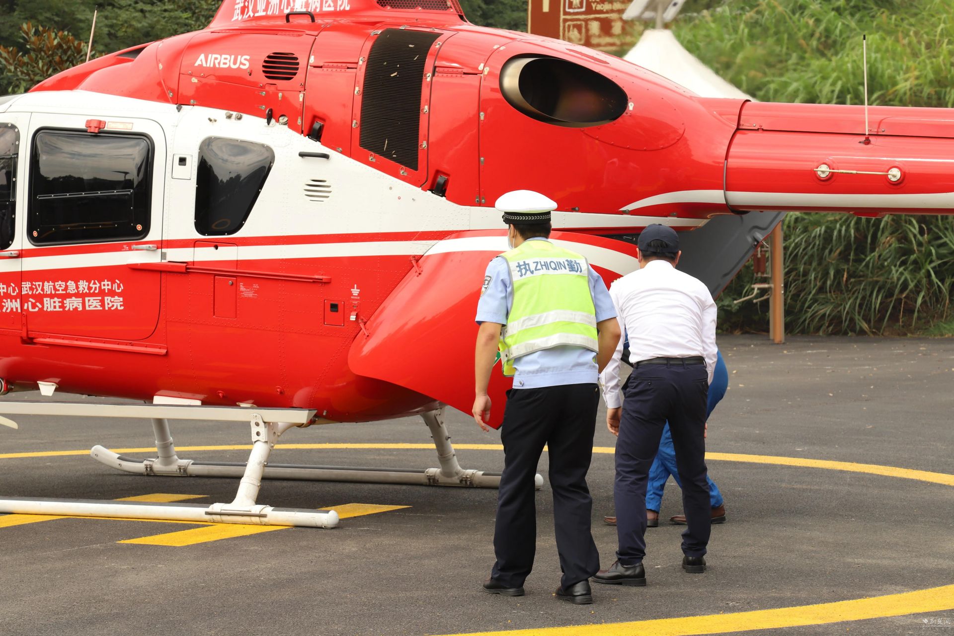 荊楚網(湖北日報網)訊(通訊員 李佳)8日上午9時許,黃陂長軒嶺街十棵松村委會上空,響起直升機螺旋槳的聲音,一架武漢亞心總院的救援直升機緩緩降落在村委會前的空地上。