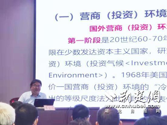 開班儀式后,中國地質大學(武漢)區域經濟與投資環境研究中心主任、教授、博導鄧宏兵以《優化營商環境:理論、政策與實務》為主題作了精彩的專題輔導報告。鄧教授的報告視野宏闊、邏輯嚴密、深入淺出,贏得觀察員一致好評。