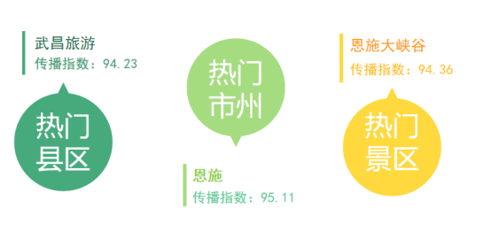 8月下半月,隨著各地景區(qū)相繼恢復開放,旅游行業(yè)有所回暖。9月15日,荊楚網(湖北日報網)、楚天輿情數(shù)據(jù)研究院發(fā)布湖北旅游傳播指數(shù)8月下半月榜(數(shù)據(jù)統(tǒng)計時間:2021年8月16日至8月31日)。本階段,武昌旅游傳播指數(shù)位居縣區(qū)首位,恩施市傳播指數(shù)居市州首位,恩施大峽谷是傳播指數(shù)最高的景區(qū)。