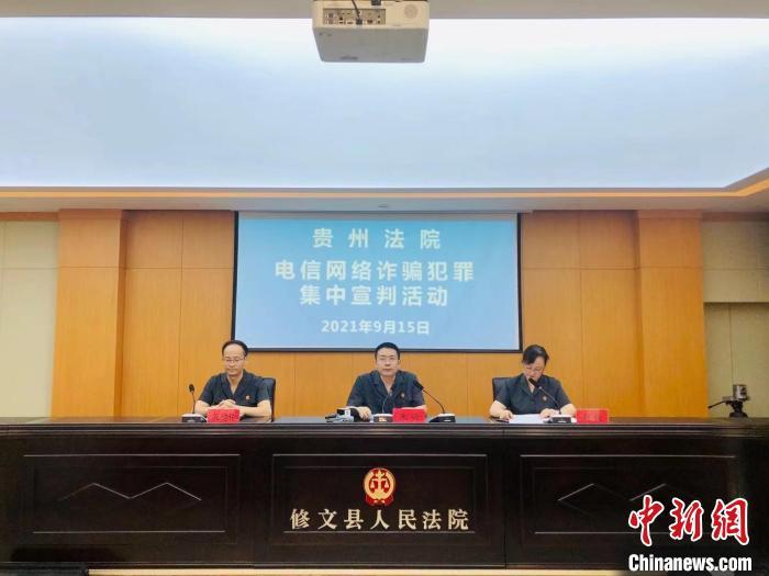 圖為貴州法院電信網(wǎng)絡(luò)詐騙犯罪集中宣判活動(dòng)通報(bào)現(xiàn)場(chǎng)。 張偉 攝