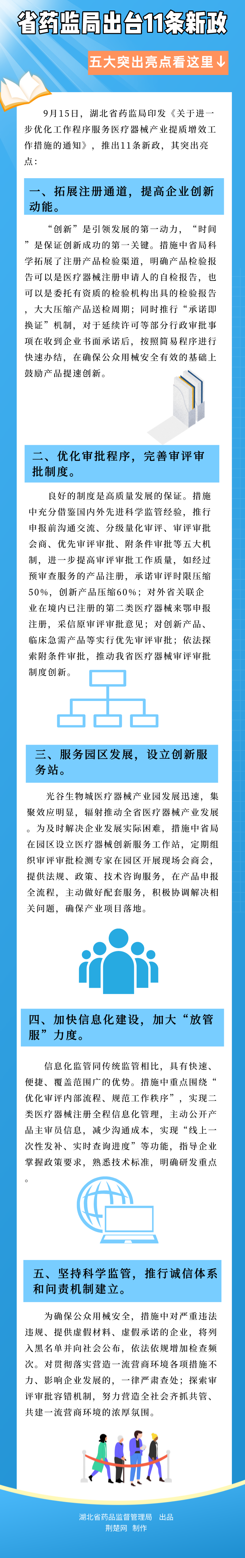 荊楚網(湖北日報網)訊(記者魏靄瓊 通訊員沈君)為回應企業呼聲,解決企業難題。9月15日,湖北省藥品監管局(以下簡稱“省藥監局”)出臺《關于進一步優化工作程序服務醫療器械產業提質增效工作措施的通知》,旨在進一步打造政策洼地、創新高地、營造一流的營商環境,服務湖北省醫療器械產業高質量發展。