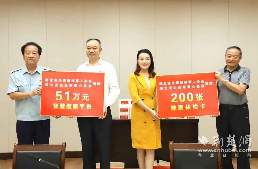 在9月18日當天活動中,省關愛退役軍人協(xié)會副會長鄺遠平、省慈善總會副會長范紅華、省企業(yè)家聯(lián)合發(fā)展促進會副會長田少鋒和愛心企業(yè)家黃娓娓,向徐申權等全國“最美退役軍人”、“荊楚楷模·最美退役軍人”以及軍休干部等100多名老黨員,捐贈綠凱智能智慧健康手表170只、健康體檢卡200張,總價值超過50萬元。