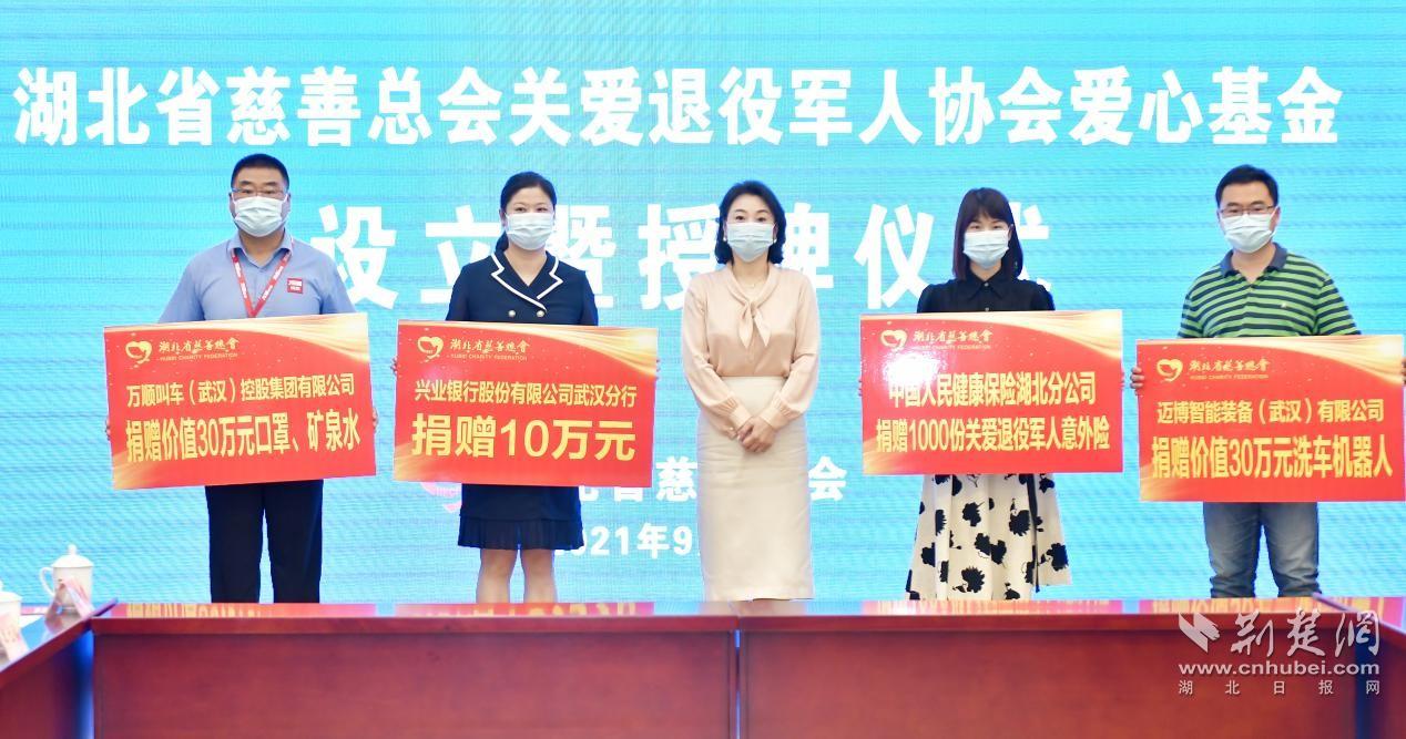 荊楚網(湖北日報網)訊 (記者肖慧婷 通訊員黎蕊)9月18日,由湖北省關愛退役軍人協會設立的“湖北省慈善總會關愛退役軍人協會愛心基金”舉行授牌儀式,基金將用于開展關愛退役軍人、支持創業就業、志愿服務等慈善活動。