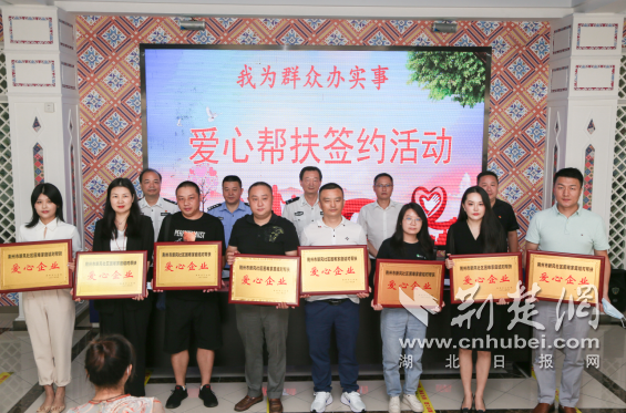荊州市公安局向愛心企業授予“結對幫扶愛心企業”牌匾(通訊員供圖)