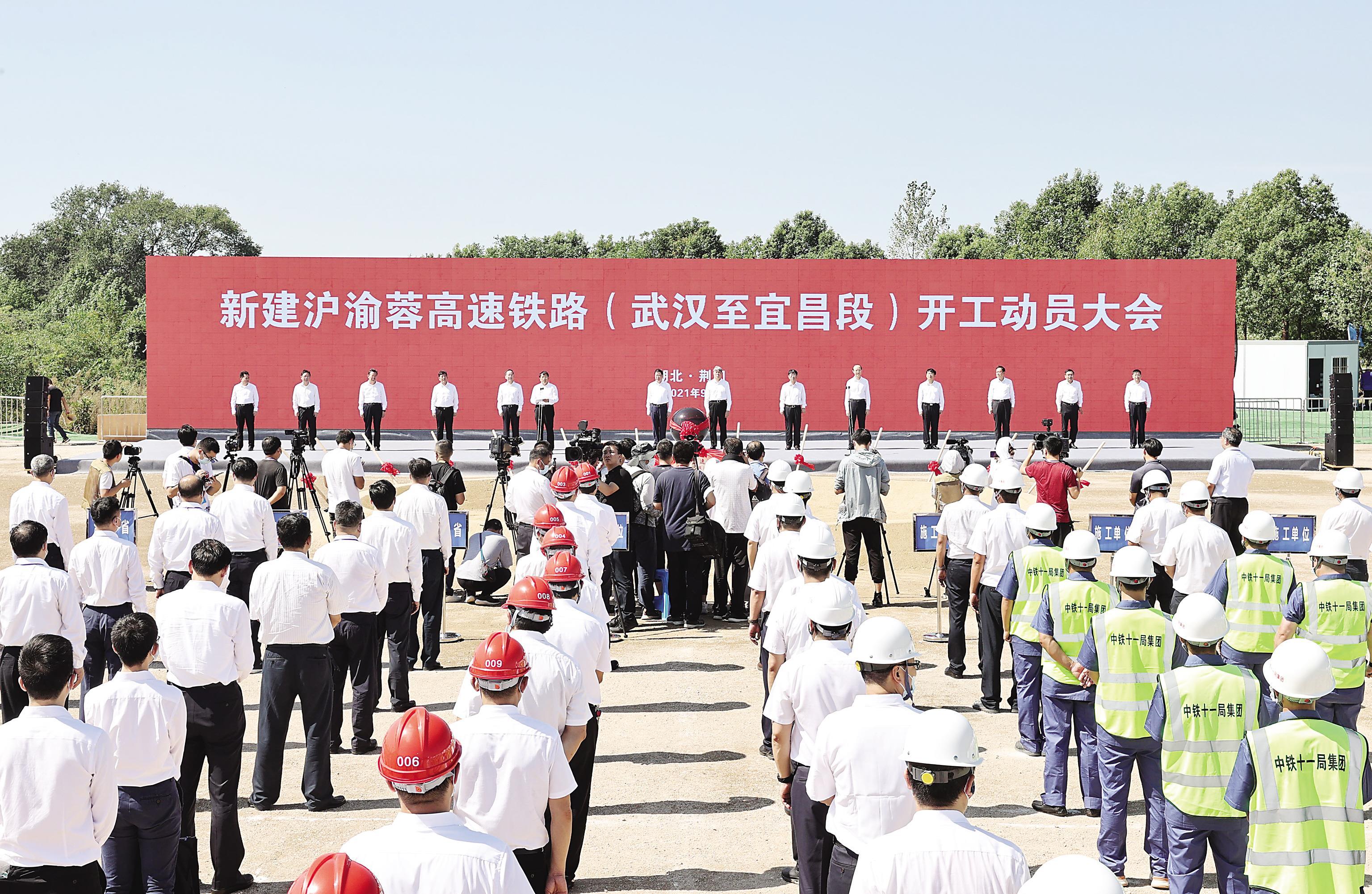 湖北日報訊 (記者李保林)9月25日,新建滬渝蓉高速鐵路武漢至宜昌段開工動員大會在荊門舉行,標志著沿江高鐵武漢至宜昌段正式開工建設,這也是滬渝蓉沿江高鐵七段中的首個開工工程。中國國家鐵路集團有限公司黨組書記、董事長陸東福,省委書記、省人大常委會主任應勇共同啟動開工建設。省委副書記、省長王忠林,國鐵集團黨組成員、副總經理王同軍致辭。